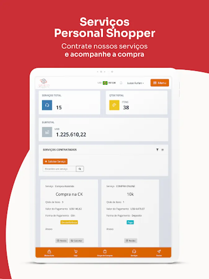 The America Shoppers application was created with the purpose of simplifying the management of purchases, offering a series of convenient services. Among them are a personalized shopping assistant, the ability to participate in group shopping communities and an integrated online store. The application's user interface is intuitive and user-friendly, which allows users to easily request available services and follow the shipment and tracking of their orders in an uncomplicated way.