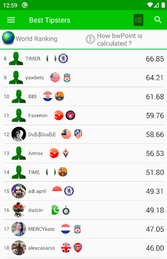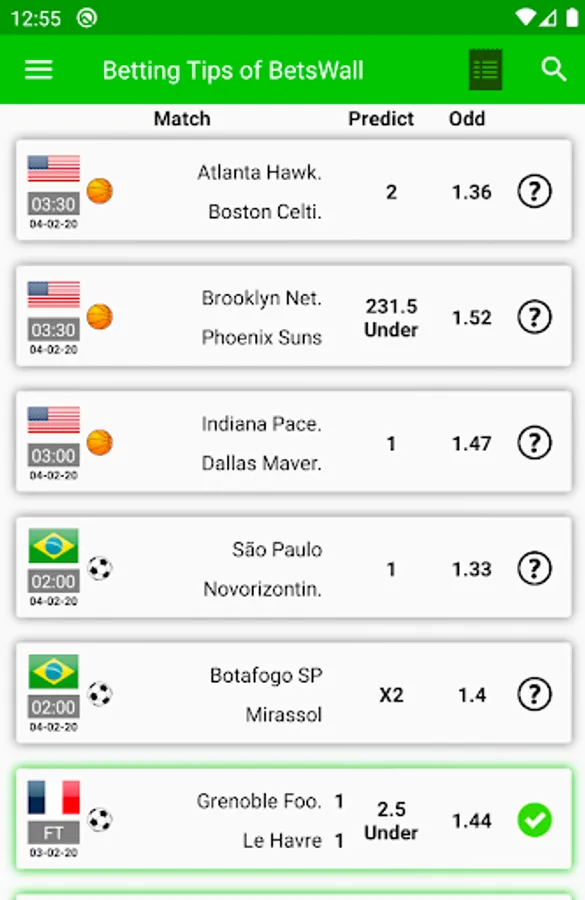 Using BetsWall you could see free football, basketball & tennis (Champions League, World Cup, Premier League, La Liga, Bundesliga, Serie A, League 1, NBA, Euro League, EuroCup, Wimbledon, US Open, Australian Open, French Open and all major football and basketball organizations.) betting tips of best tipsters from all around the world before matches started.