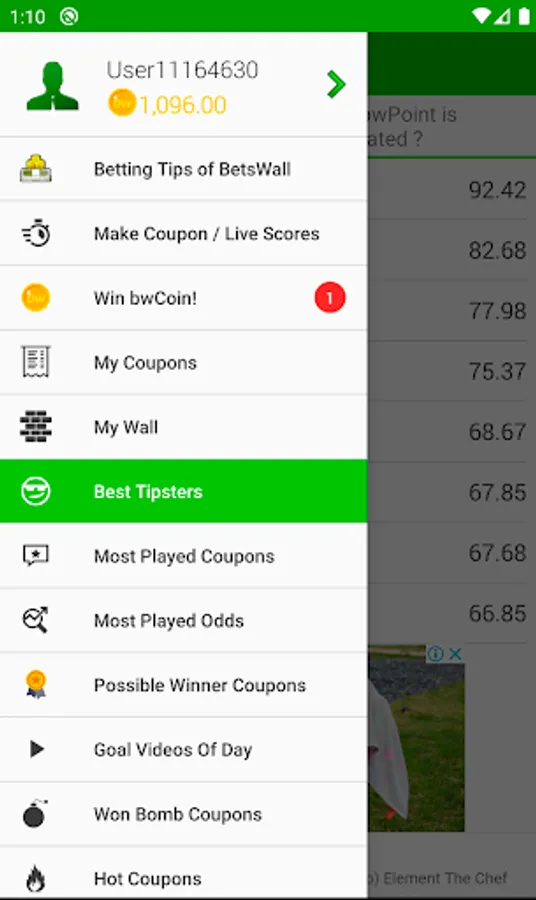 • Select your favorite tipsters and get notification when them share coupons instantly.