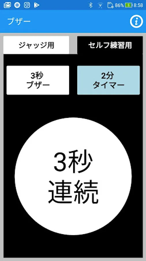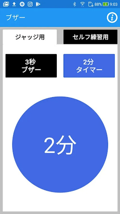 競技開始、1分経過、1分30秒経過、競技終了の音声付き2分タイマー
