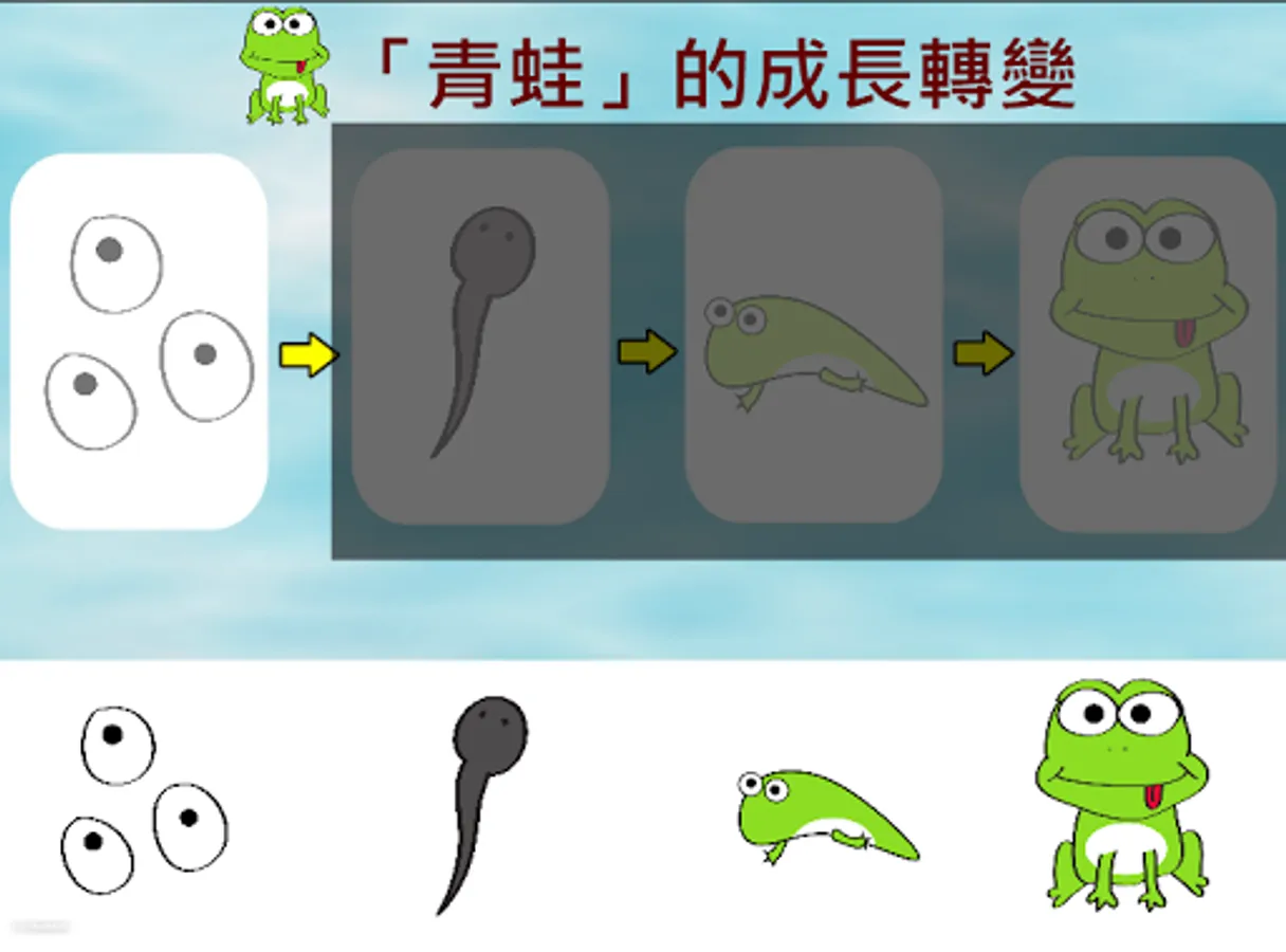 本校期望學生透過此遊戲能認識及排出以下動物的成長過程: