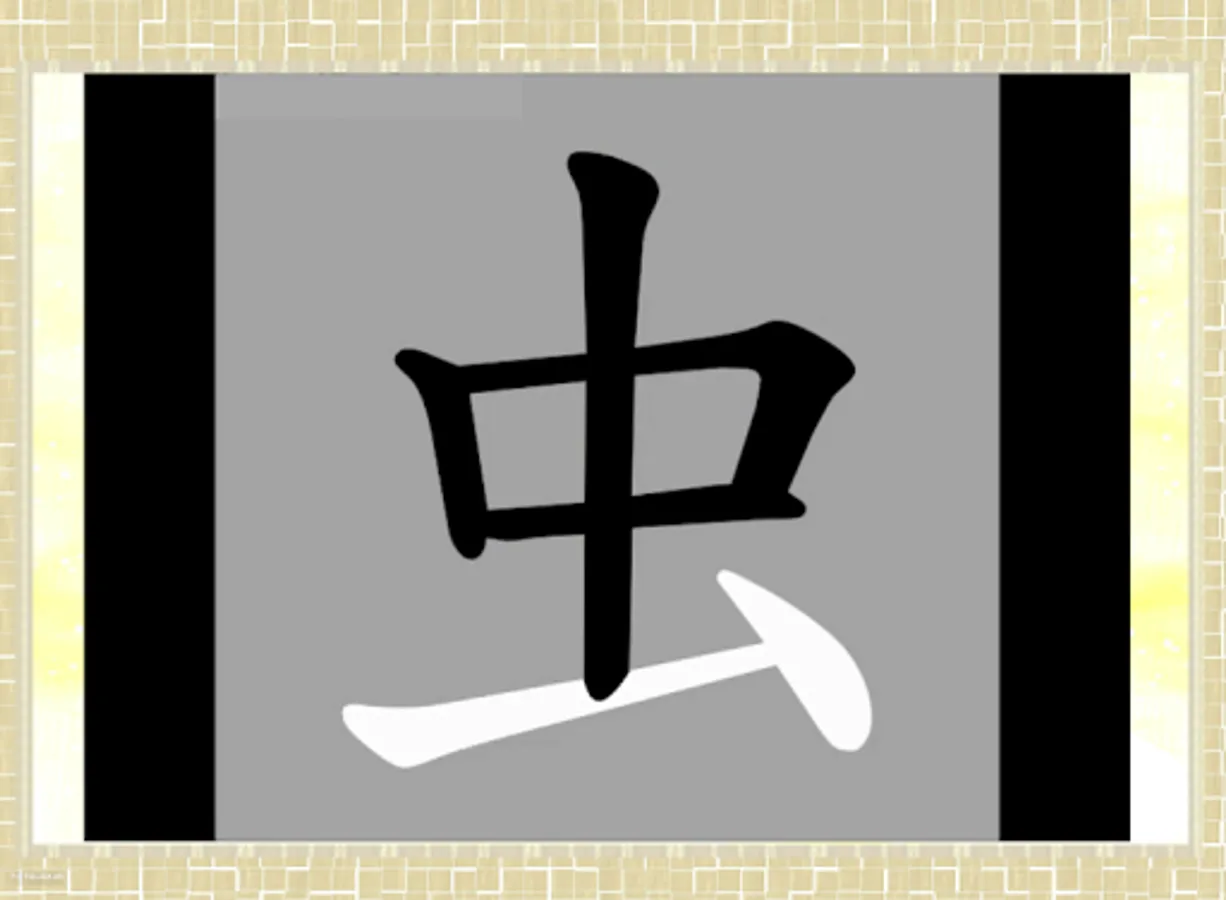 - 以動畫形式顯示不同圖片,辨識「虫」字的筆順