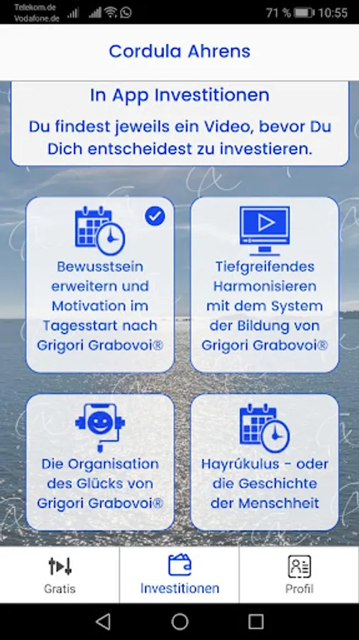 Jeweils mit Einführungsvideo und Text, vor Deiner Investition