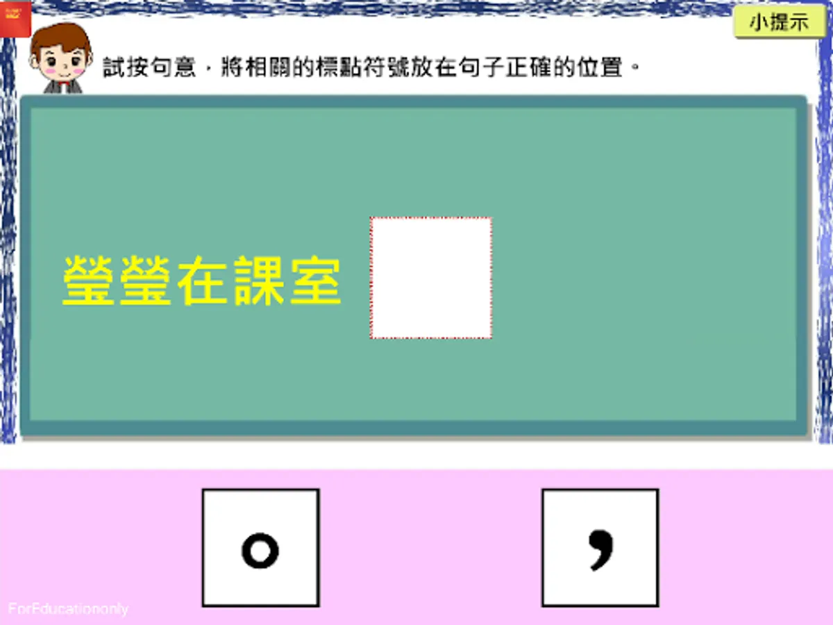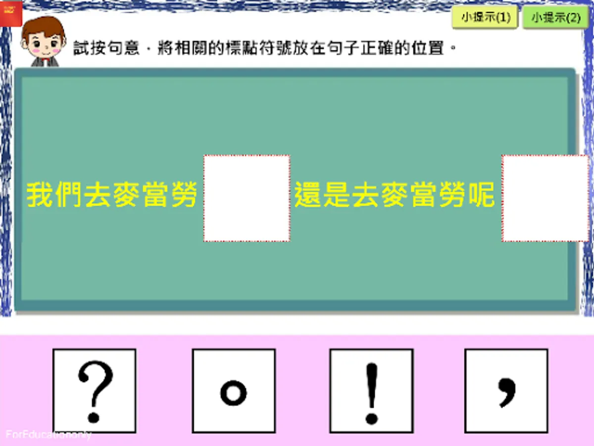 1. 遊戲共分為三大部份(分別是「認識」、「辨認」及「運用」標點符號)。