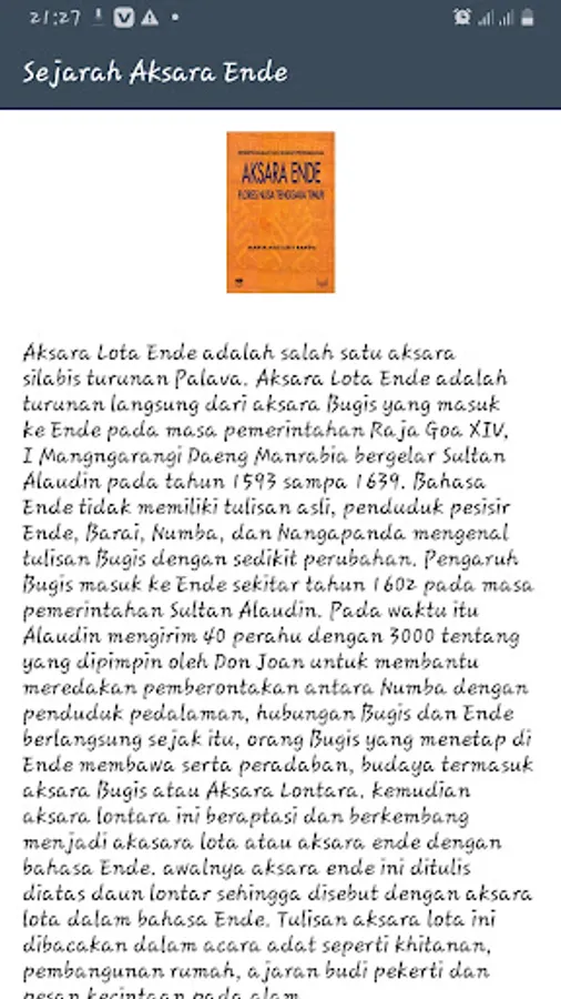 The Ende Flores NTT script is a dictionary application for the Ende language script which is attached to the Province of East Nusa Tenggara
