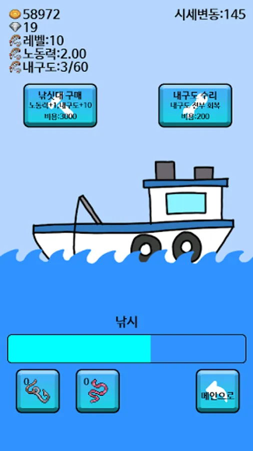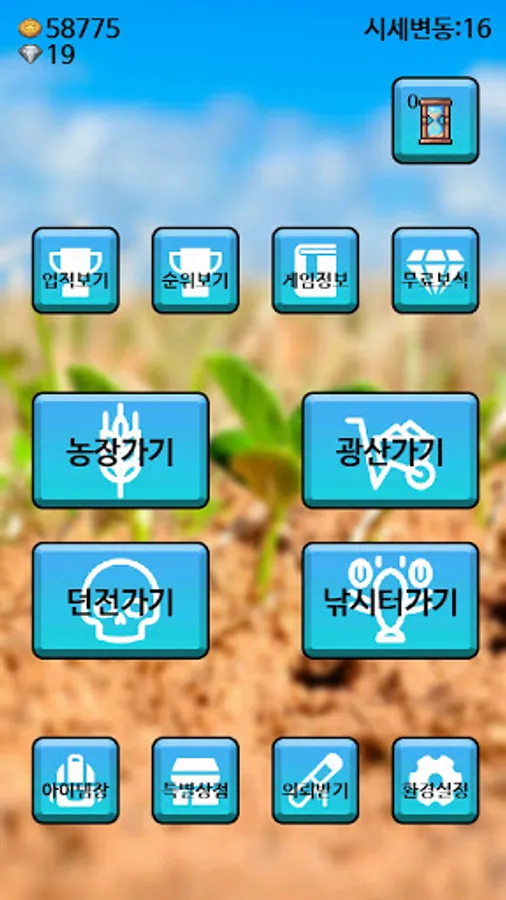 This game is a clicker game consisting of four contents: farming, mining, fishing, and dungeon.