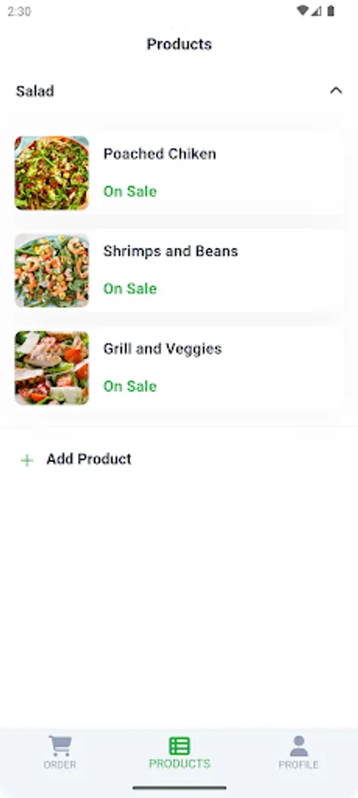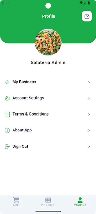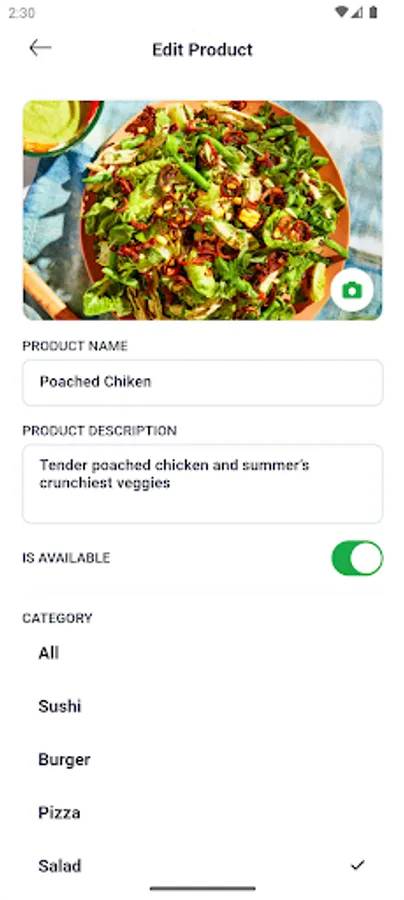 Product Management - administrator can see the product list of their place and manage products - add new products, edit product information, photo, options, and prices;
