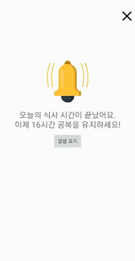 2. When the last meal is recorded and saved, the alarm sounds after 16 hours after the end of the fasting time.