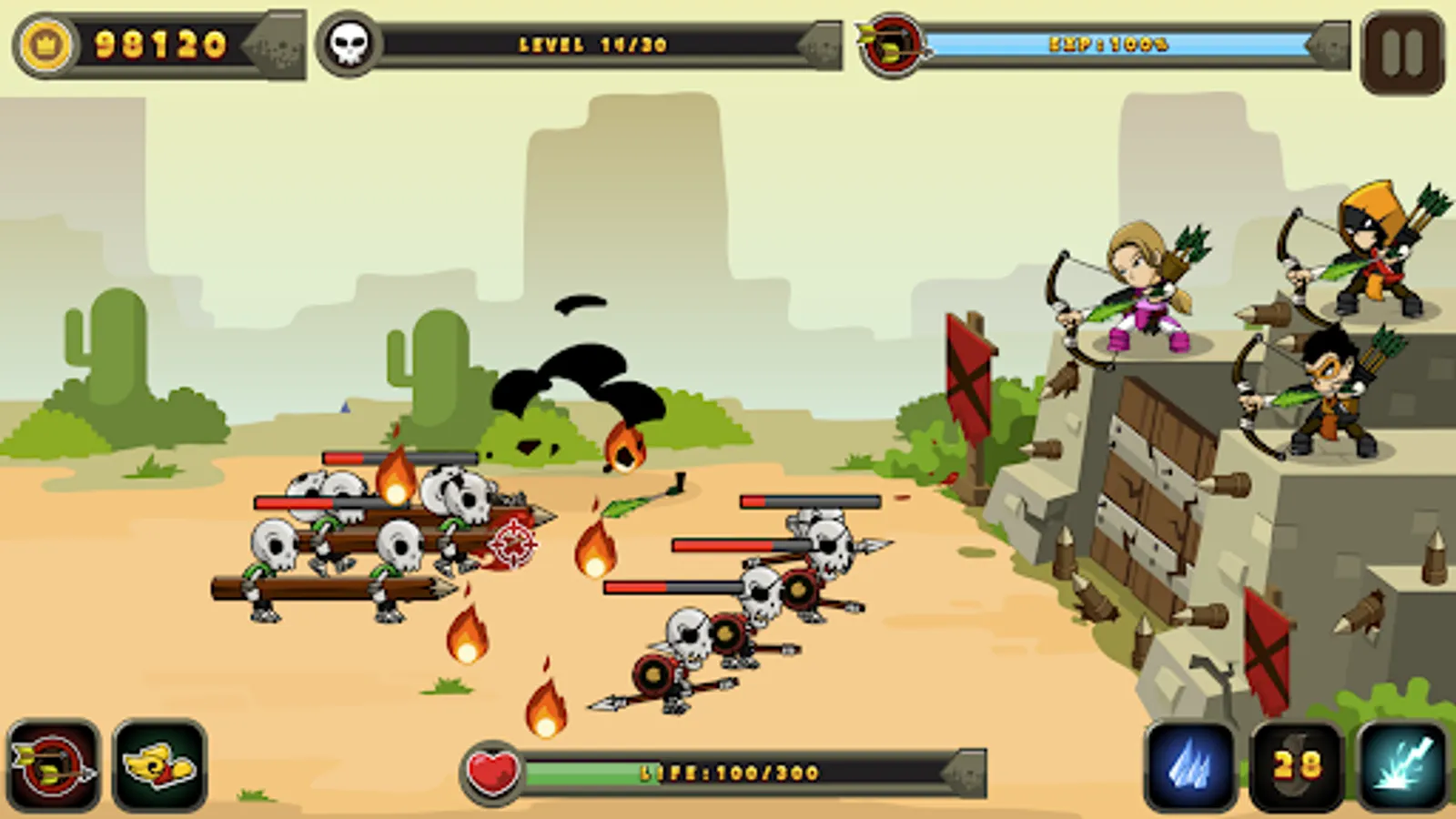 Kingdom defens Archero Battle is a cool game about defending your fortress, upgrading your heroes, upgrading your tower, using super abilities and magic to face an incredibly large number of enemies, only the bravest will be able to go to the end! This game has 30+ levels with gradually increasing difficulty.