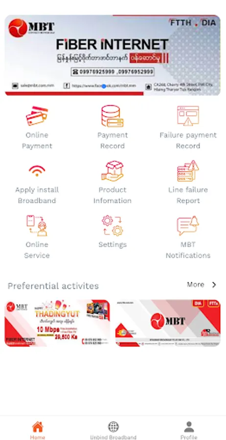 MBT , with its leading-edge technology and professional team, is specialized in network solutions providing to enterprises, government bureaus, NGO institutions, individuals etc. Granted with the network service license, MIC permit, MBT has established its self-owned and self-managed nationwide transmission and IP network. We are now ready to offer the most comprehensive network solutions to our clients with lower cost and better service. Besides, MBT has always been taking social responsibility and doing contribution to the benefits of Myanmar and its people. Together, Let’s build a better connected Myanmar!