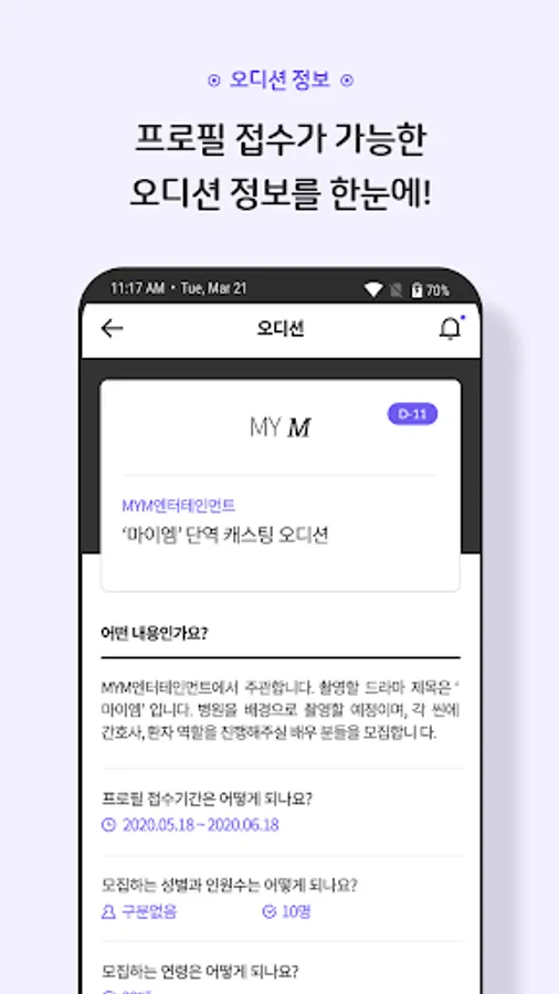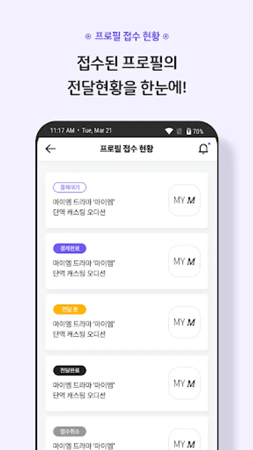 The mym app delivers my profile easily and conveniently to the audition you want.