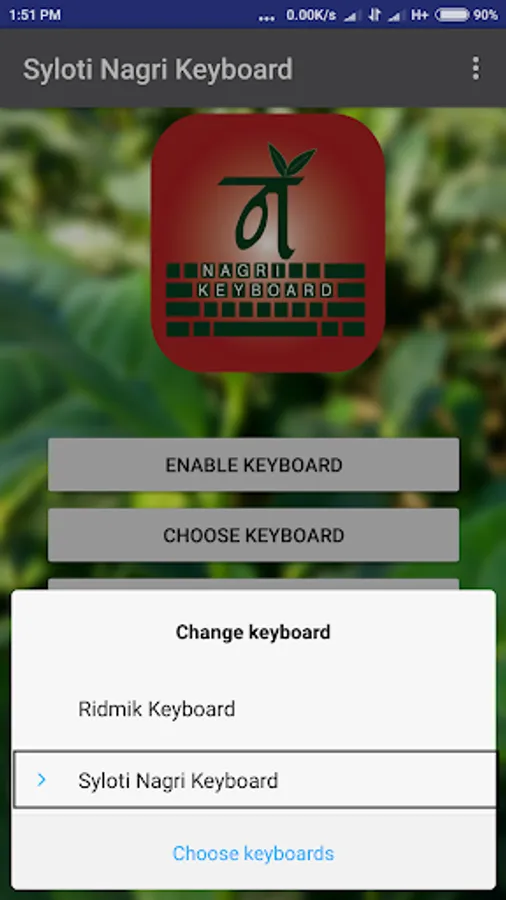 2. Go to Main Menu > Enable Keyboard > Select Syloti Nagri Keyboard