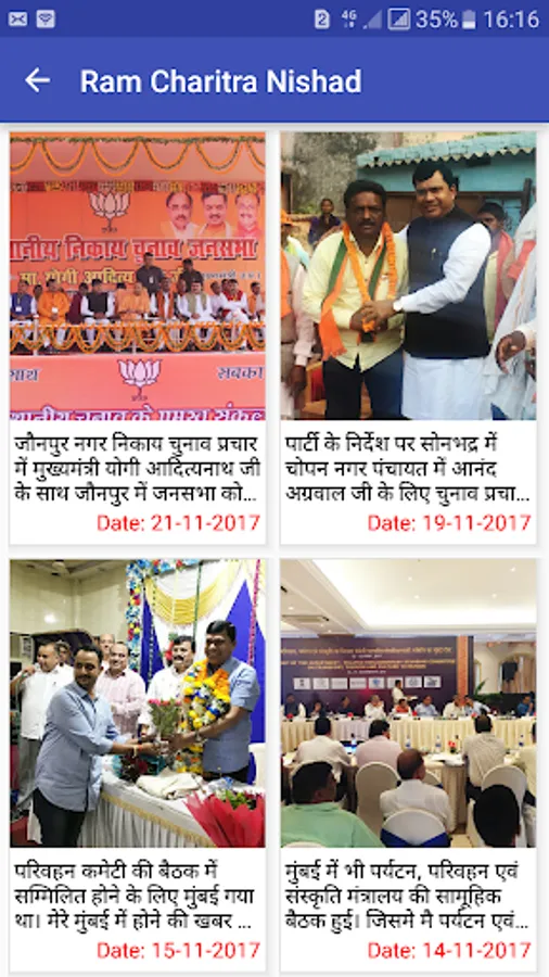 Mr. Ram Charitra Nishad is a member of the 16th Lok Sabha from Uttar Pradesh State and has won the Indian General Elections, 2014 from the Machhlishahr (Lok sabha constituency). He is a member of the Bhartiya Janta Party. He is a Social Worker and always ready to stand with the needy people an all way.