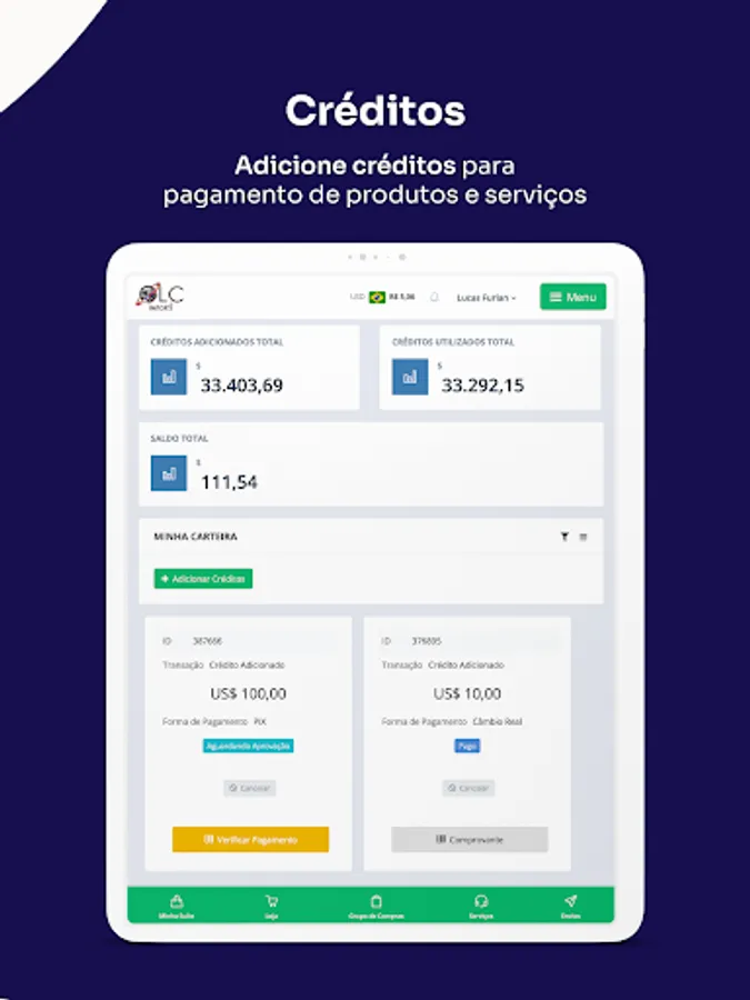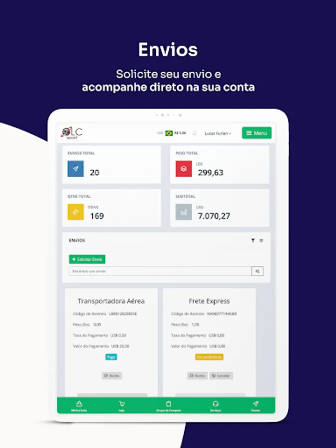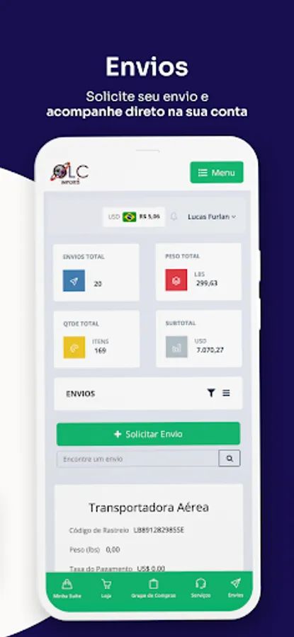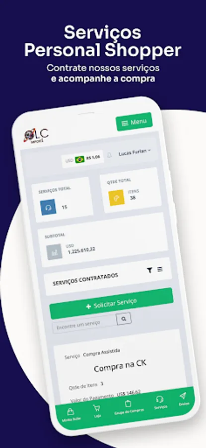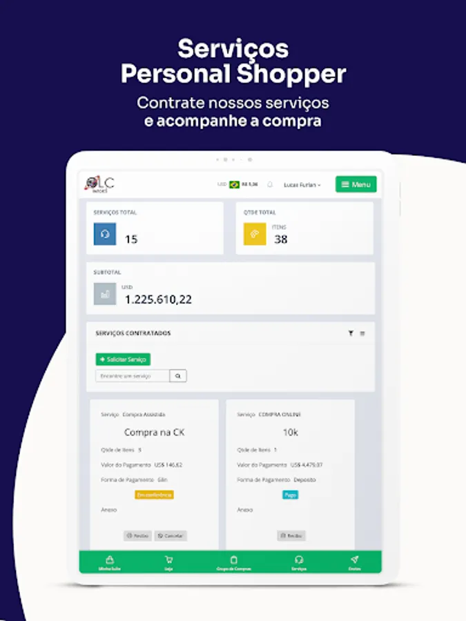 The OLC IMPORTS app is intended to manage purchases, providing a variety of useful services, such as a personal shopping assistant, purchasing group and an online store. With an intuitive and friendly interface, users can easily request available services, in addition to tracking shipments and tracking their orders in a practical and simple way.