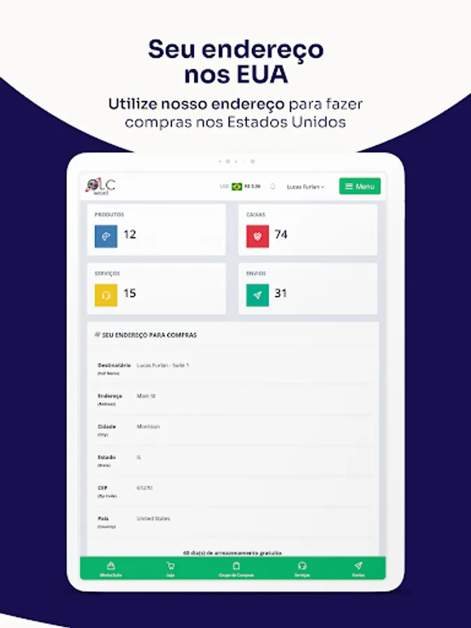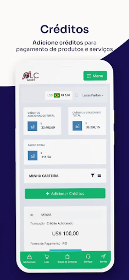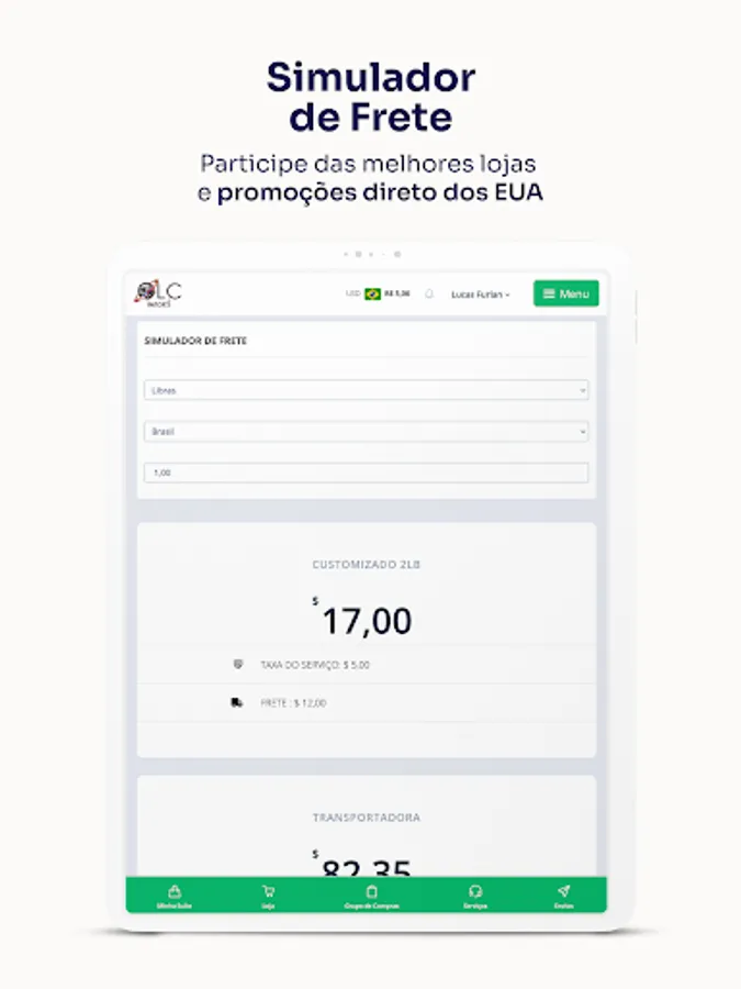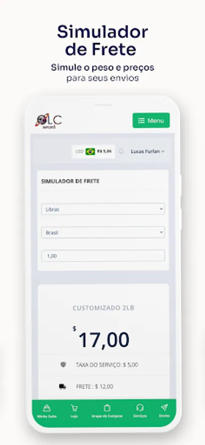 One of the most attractive features of the application is the ability to forward orders, allowing users to make purchases in different locations in the country or even the world and receive them directly at the address of their choice. OLC IMPORTS offers the option to add credits to the user's account, as well as calculate freight estimates for different destinations and order weights.