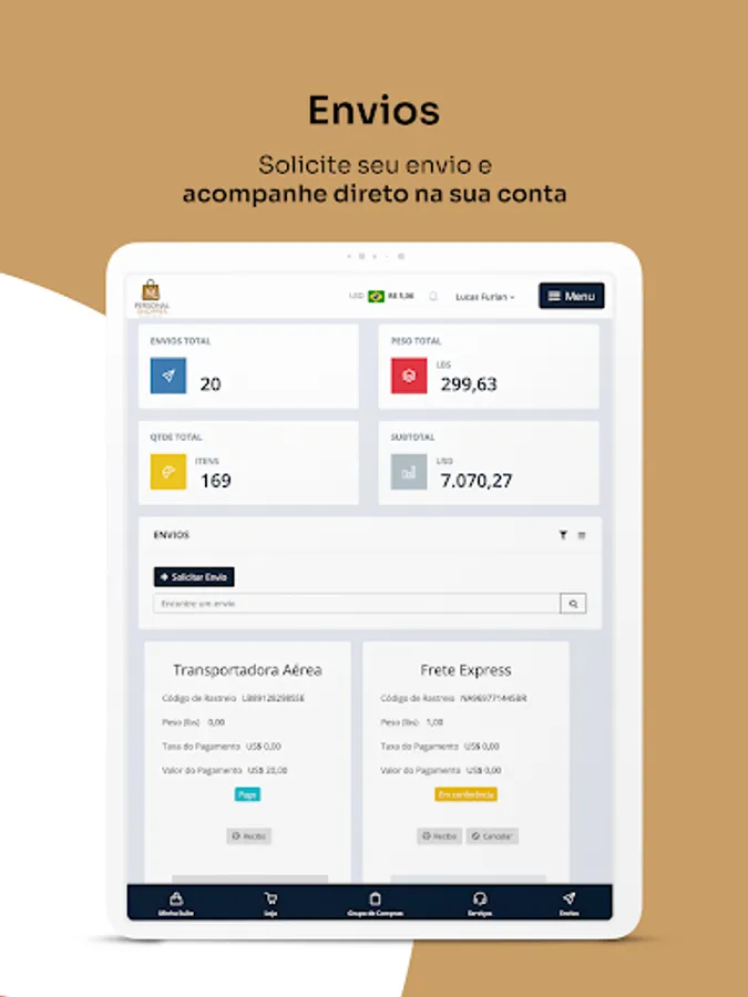 We provide our customers with a US shipping address where products purchased from online stores can be shipped. Then, the company takes care of the entire process of redirecting the order to the customer's address in Brazil and/or the World.