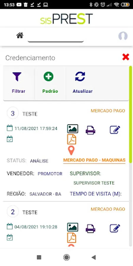 Through this application, your team verifies the work's address, contact persons, vehicles and tools reserved for the visit, sales products and extras to be delivered, services and tasks to be performed and put their service report and point out identified pending issues; as well as taking pictures of the tasks and services performed, showing the result of the day's work.