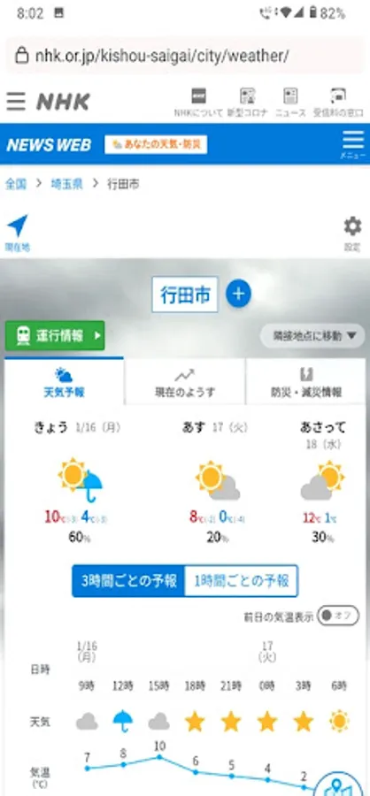 ・Weather information for Saitama Prefecture and the location of the facility (NHK Disaster Prevention)