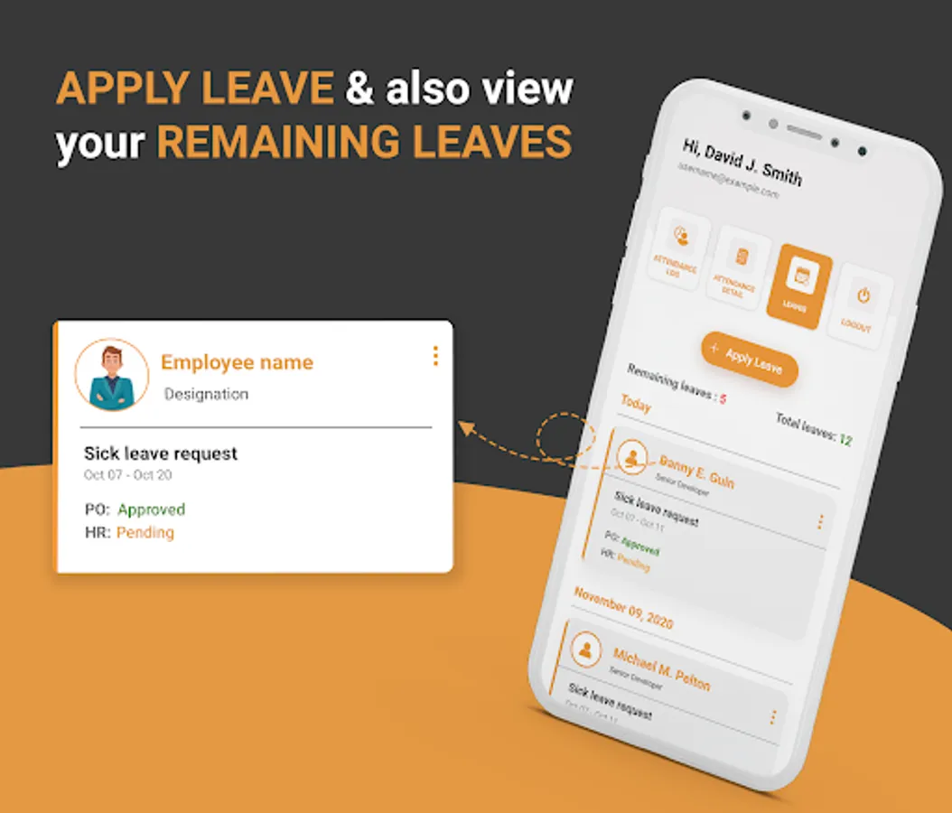 daily attendance log, check attendance details of a certain time period, apply for leaves etc. You