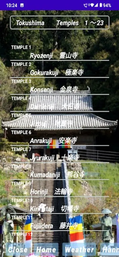 In addition to an overview of each of the 88 temples of Shikoku, you can also see the weather, accommodation facilities, laundromats, toilets, etc. that are necessary for visiting temples based on the developer's experience. You can also use it for sightseeing in Shikoku.