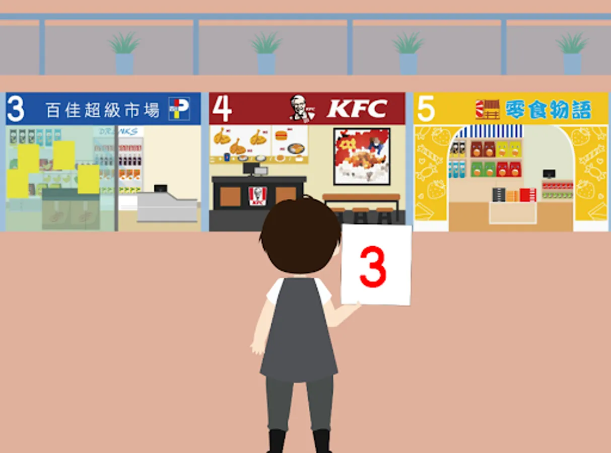 -Then, ask students to find out the numbers of different stores by reading the mall guide. During the process, students are trained to find shops by matching numbers