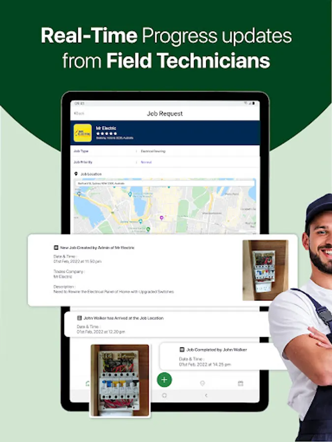 Built for FSM Business Owners having multiple employees across multiple Field Services Categories (e.g electrical & plumbing business, roof installation, &, carpentry), and aiming for higher efficiency and transparency in the field.