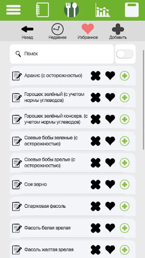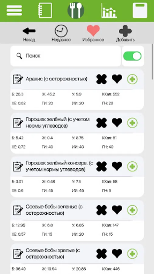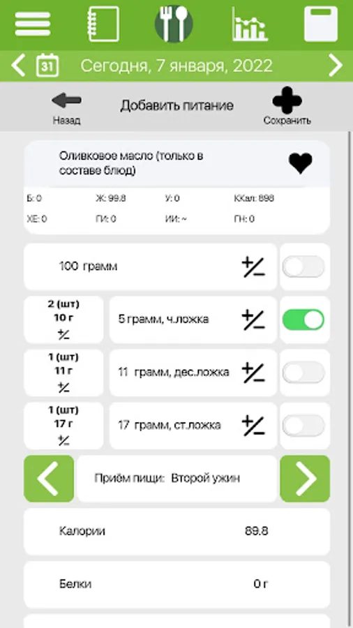 For the second type, it will be convenient to use a bread unit calculator (XE). A bread unit or XE (carbohydrate unit) is a conventional unit for an approximate estimate of the amount of carbohydrates in foods: one XE is equal to 12 grams (in the application it can be corrected for a different number) of carbohydrates. The concept of bread units is key in ensuring glycemic control in diabetes mellitus. The XE calculator is a useful tool.