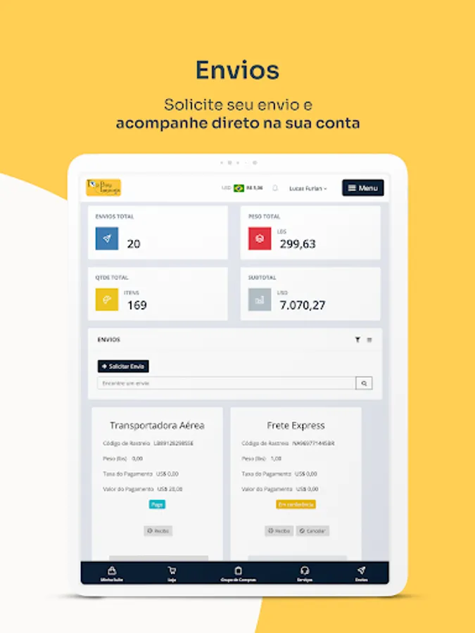 The TOP BUY IMPORTS app was developed to make it easy to control purchases, offering a variety of useful services, such as a personal shopping assistant, purchasing groups and an online store. With an intuitive and friendly interface, users can easily request available services, in addition to tracking shipments and tracking their orders in a practical and simple way.