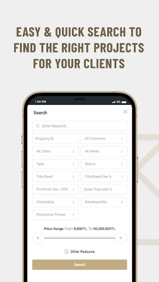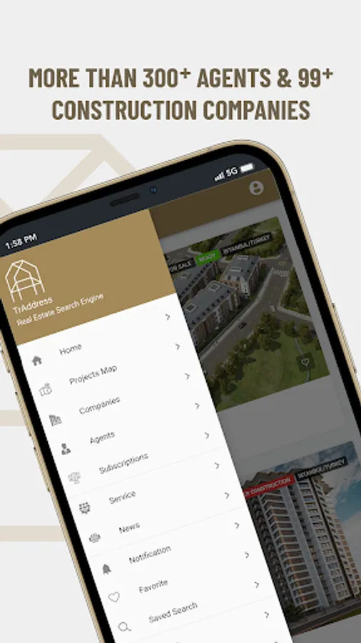 TrAddress app allows you to search Projects, Apartments, Villas, Offices, Shops etc. for sale, under such categories, You can filter out the listings.