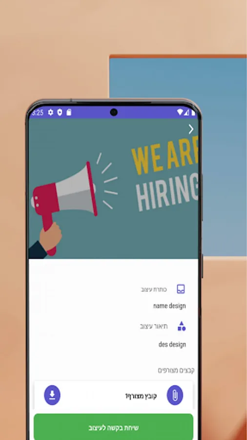 אפליקציה ראשונה מסוגה להזמנת עיצובים למוסדות ולעסקים בקלות ובמהירות !! כמו כן ניתן לפתוח את אותו חשבון ביותר מטלפון אחד ולבקש מספר עיצובים באותו זמן! , וזה מעיל מאוד למוסדות כמו מועצה מקומית או עיריות, שבהן יש הרבה מחלקות ואנשי קשר שדורשים כל כל יוני .
