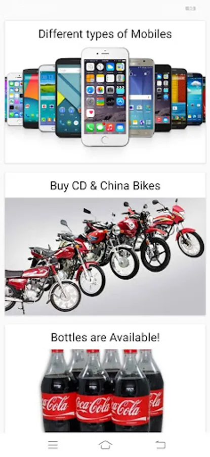 05- Items images(Mobiles, Motor Cycles, Bottles, Samosas are too available for user.
