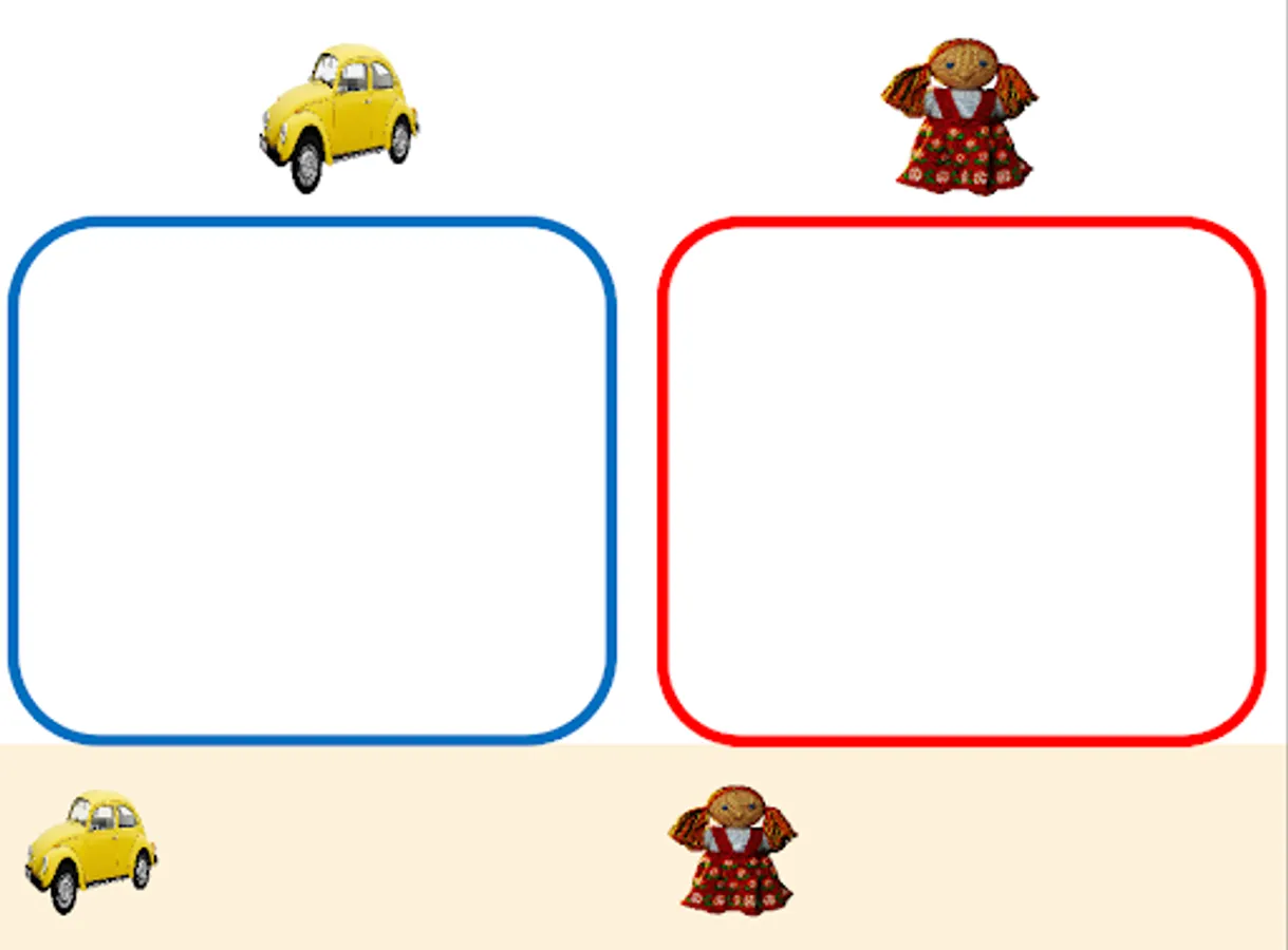 -Able to categorize two pictures of the same kind, arranged vertically and stacked upwards