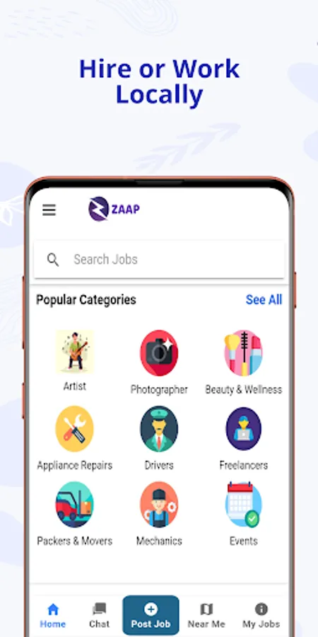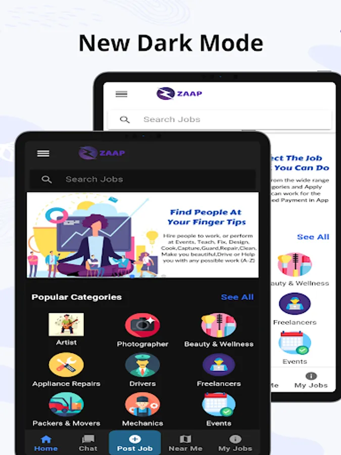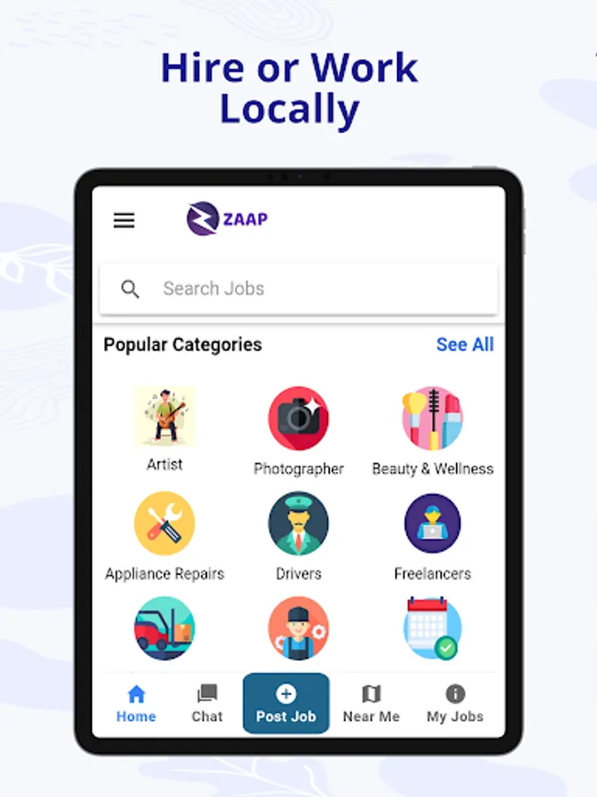 ZAAP Jobs is India's First and unique online classifieds On-demand Jobs and Services marketplace where you can 'Hire' someone locally for ‘1 Hour to 1 Week’ at your fingertips, for any possible work you have or services you required to get it done in your "Budget limit".