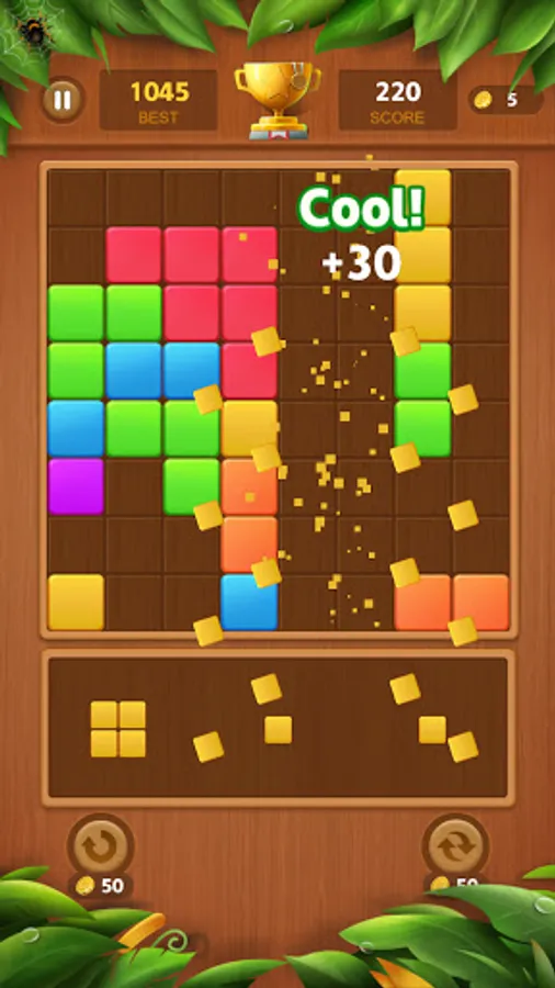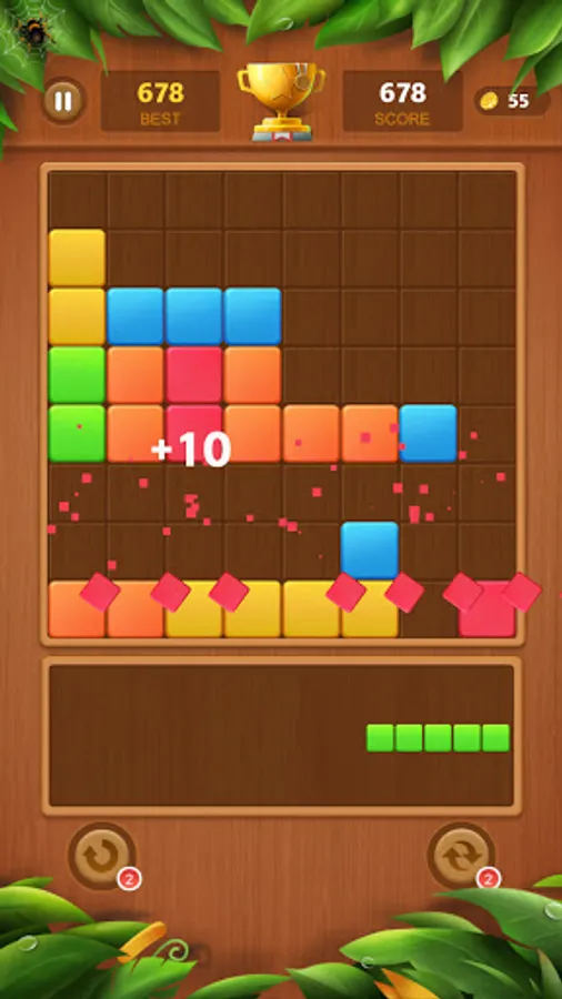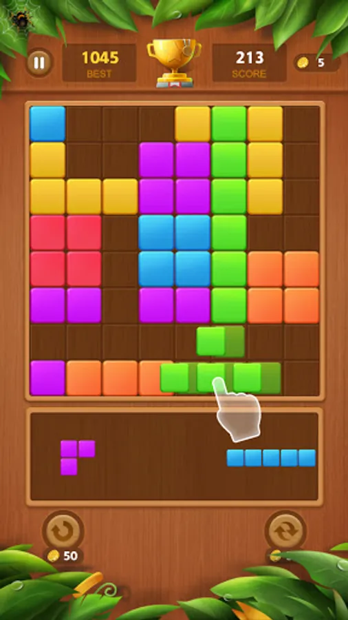 The game rule is very simple,just drag the wooden block pieces and put them into the 8x8 squares board.