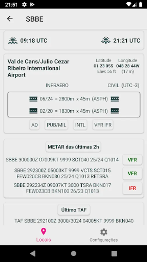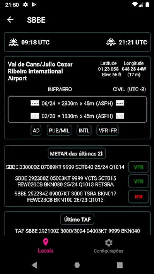 - Track the time in the location by the METAR of the last 2 hours;