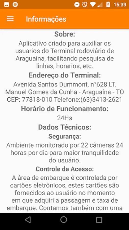 Application geared for users of bus Araguaína - TO, in order to speed up the search for lines and schedules. This application makes it easy to transport user intercity / interstate, check the municipalities served by the companies providing services in the bus station Araguaína.