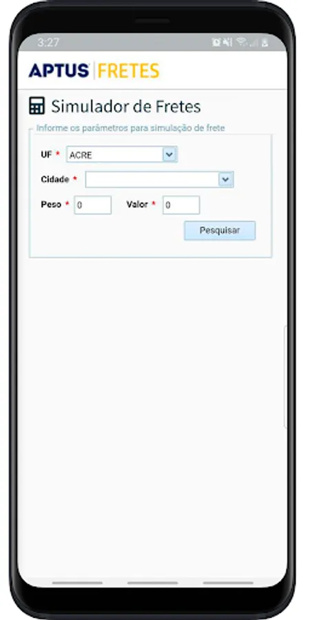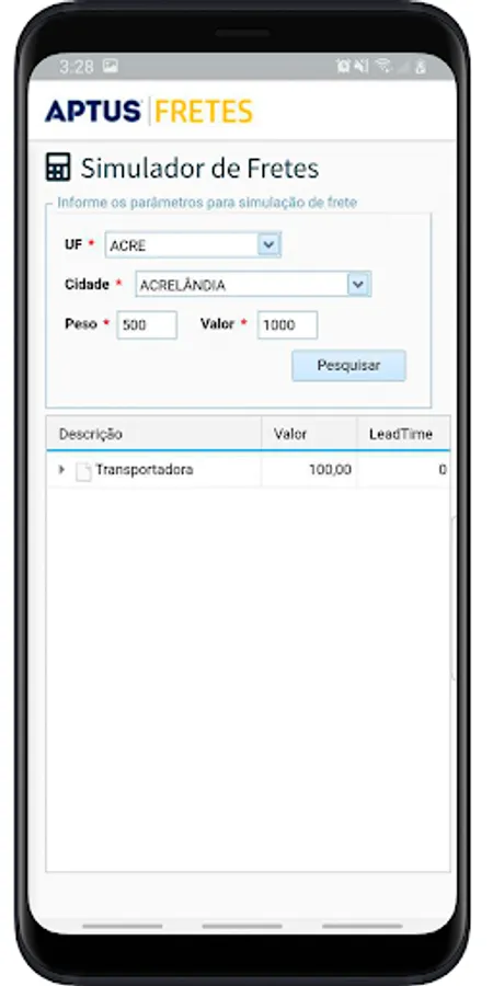 Enter the destination, weight and value of the products and the system will present the freight estimate for each carrier.