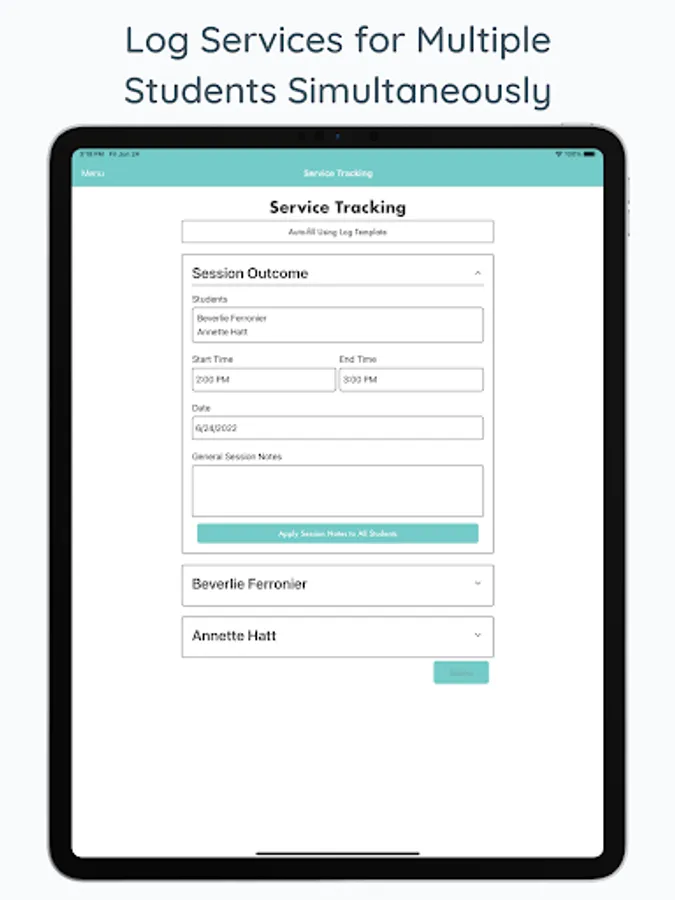 Designed for use by special education teachers and service providers, our app records service minutes in alignment with IEP goals and provides real-time data dashboards to help track and share progress with key stakeholders.