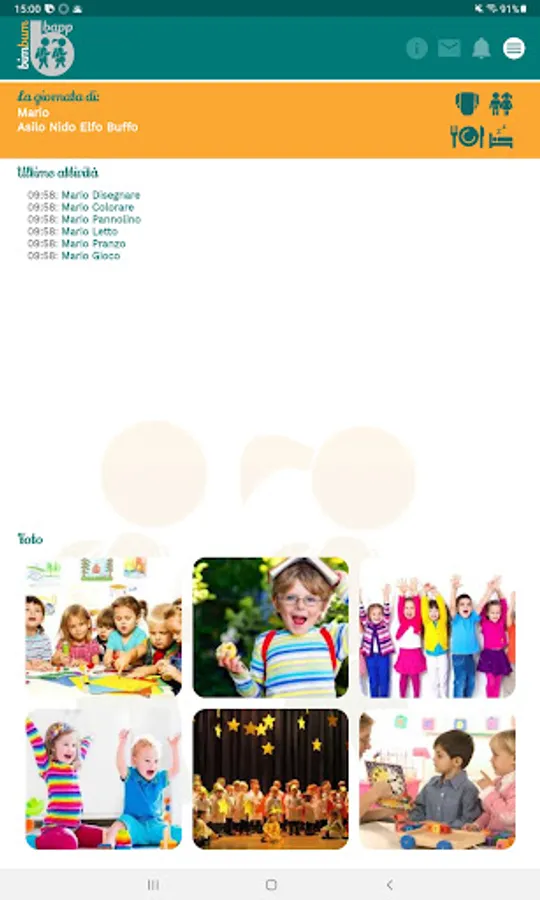 BimBumBapp is a complete system of communication with the structure, able to give timely information in real time on daily activities and on the main aspects of school life.