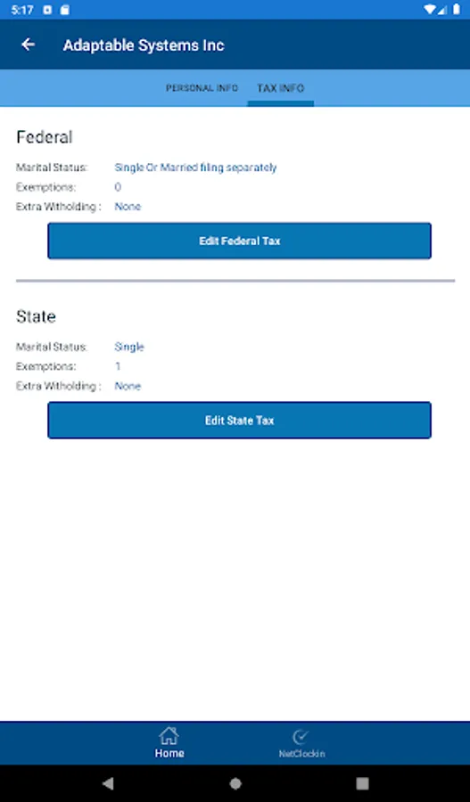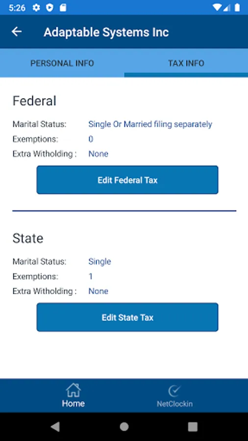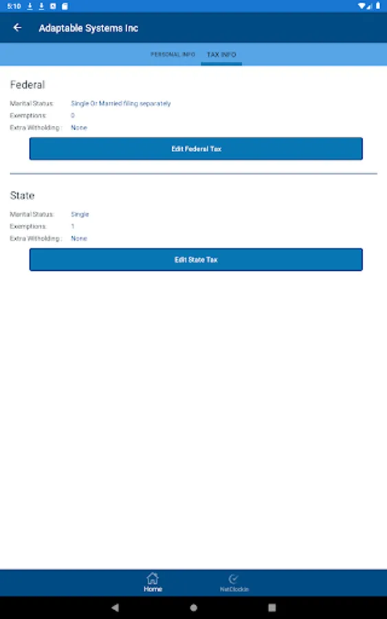 - View and/or edit federal income tax withholding status and state income tax withholding status