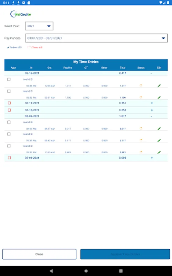 - View any time entry for past pay periods. (Ability to view past pay periods is based on your Employer’s configuration)