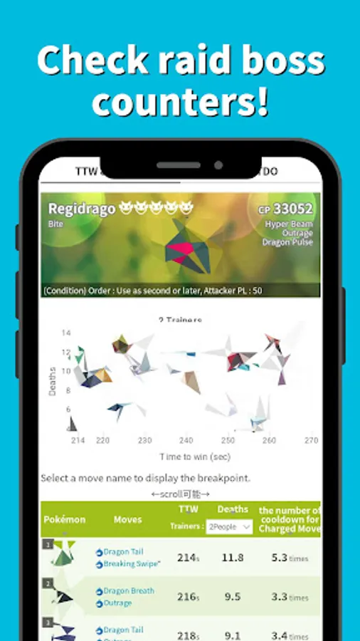 This is a tool of quick checking that victory / defeat against opponent's Pokémon, charged moves with good damage efficiency, amount of received damage, etc. in PvP.