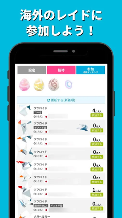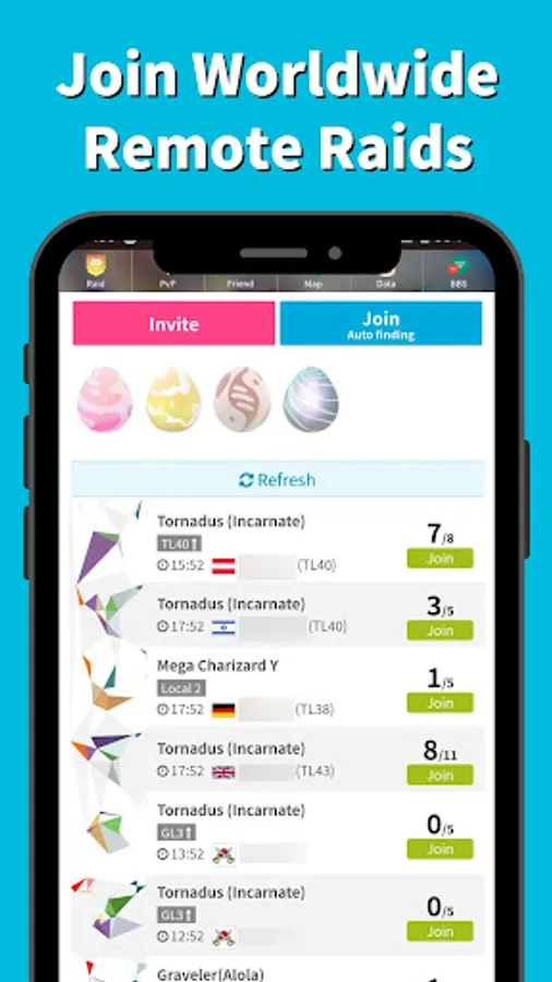 You can join or invite remote raids around the world anytime, anywhere. Select the raid boss you want to join and it will match automatically.