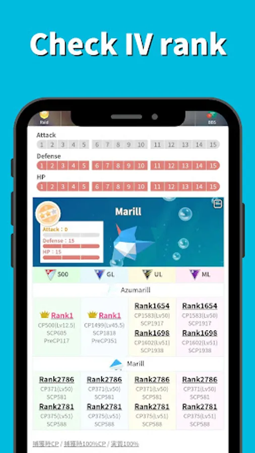 You can check the rank and breakpoint of each Pokemon from their IV.