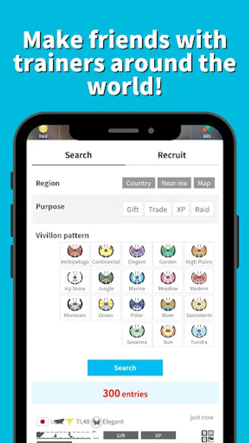 You can search for trainers from all over the world, or by Vivillon pattern.