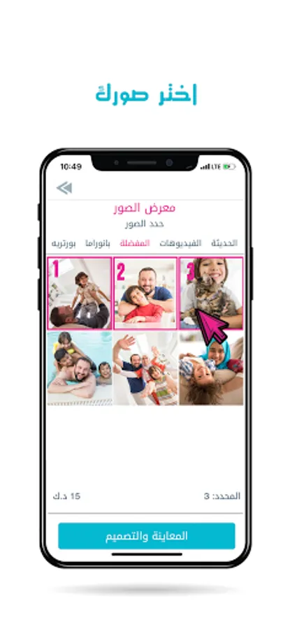 اختر الصور من ألبوم صور هاتفك أو يمكنك اختيار أي صورة تريدها من معرضنا المجاني..
