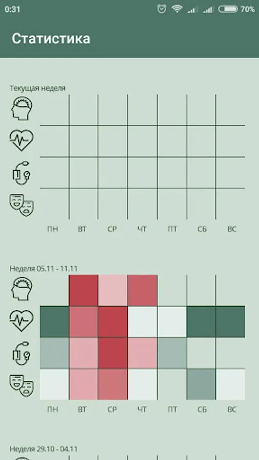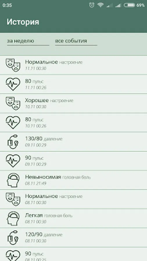 Started to new training? Or made major changes in nutrition? Maybe started a new course of medication? In such cases, the application will help to track changes in the body: pressure, headache, mood and pulse.