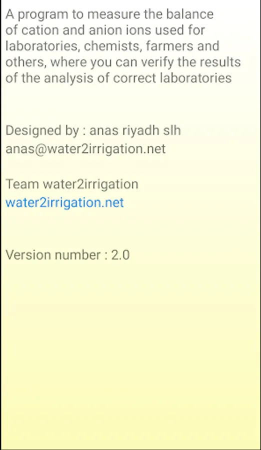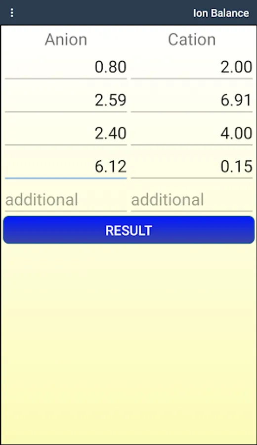 A program to measure the balance of negative and positive ions used for laboratories, chemists, farmers and others, where you can verify the results of the analysis of correct laboratories
