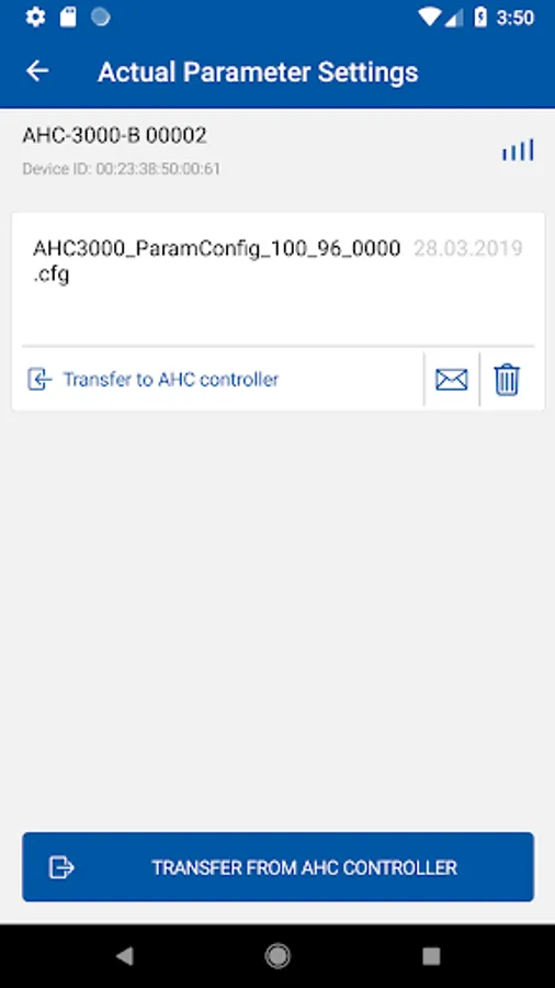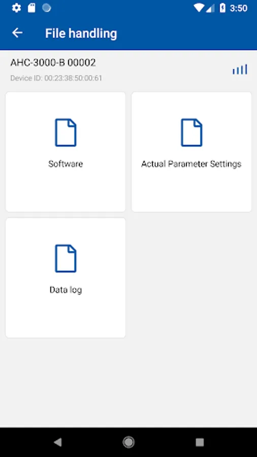 This OJ Air service tool allows your Smartphone/tablet to operate as a Cloud gateway when your device has internet access and is connected to an AHC-3000-B AHU controller by Bluetooth. Furthermore it allows you to extract configuration and data log files from the AHU controller. These files can be shared by E-mail. New configuration files and software can be de-tached from your E-mail and transferred to the AHU controller.
