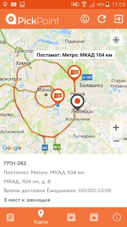 Display of the assigned fees and deliveries, the functionality for assigning fulfillment statuses, displaying points on the map, the page for the results of the collections and deliveries on the current day of work.